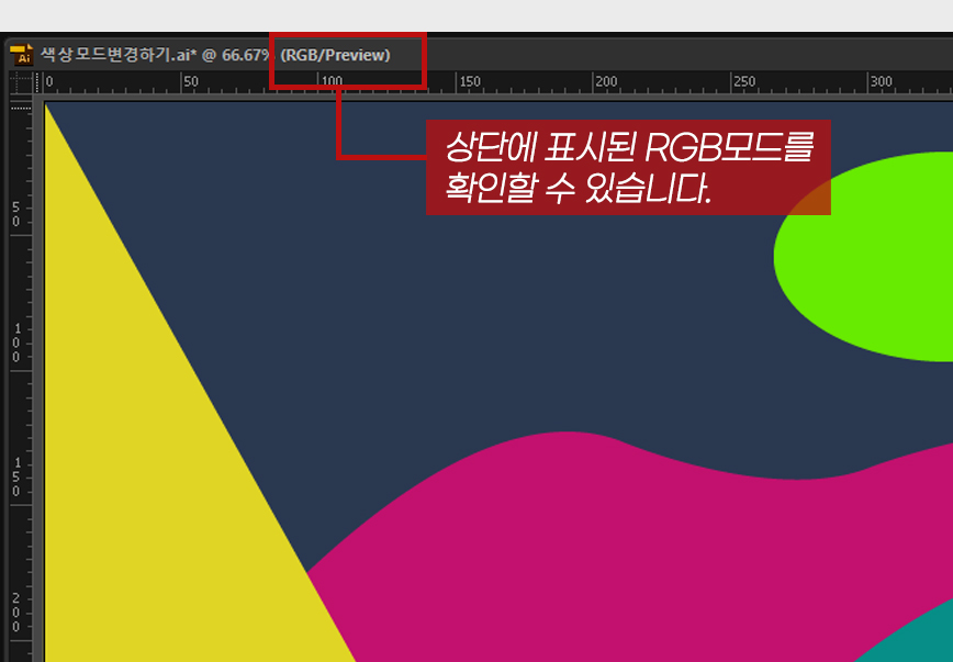 작업을 해준 이미지 창의 상단을 보면, 아래와 같이 파일명 옆으로 현재 컬러모드를 확인할 수 있습니다.
