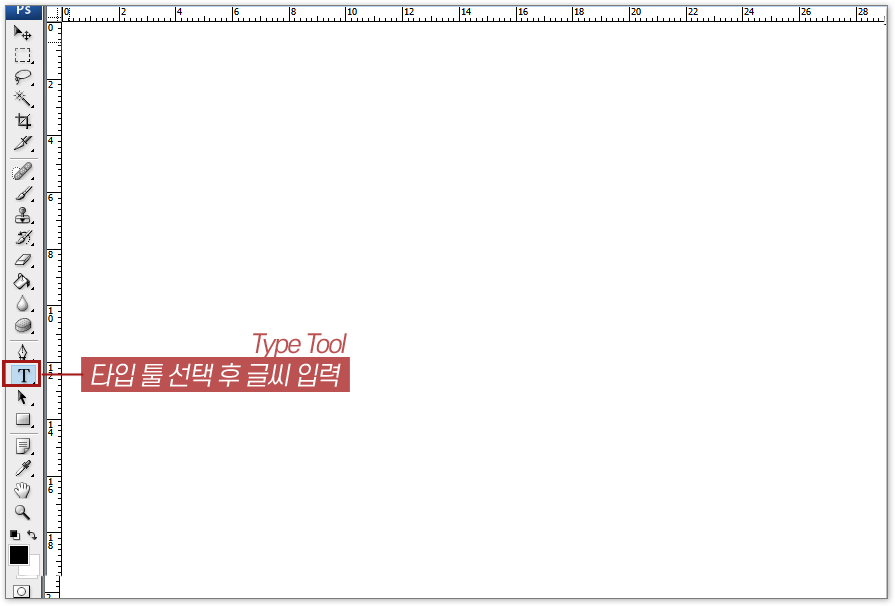 포토샵에서 새로운 작업 창 열고, 문구 작성